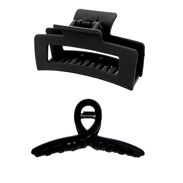 C h e r m y a a 2 Pcs Hair Clip, Hair Clip, Hair Clip, Hair Clip, Large Hair Clip, Large Size, Firm, Popular Hair Clip, Hair Clip, Hair Clip, Hair Clip, Hair Clip, Stylish, Office, Going Out, Bath, Present, 1 Each Crossbody and Square (Black)