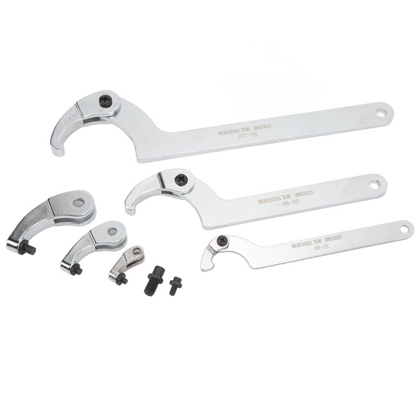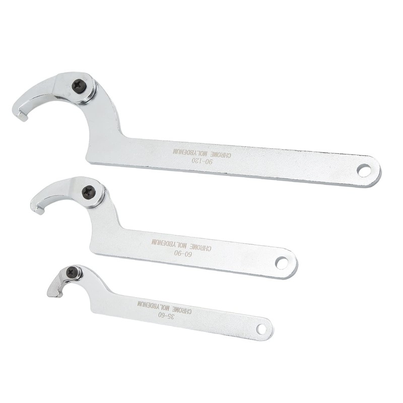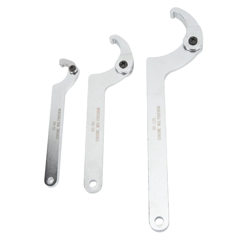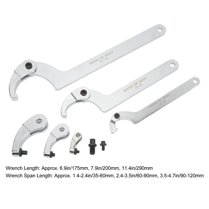 - Important Parameters The wrenches are 175mm, 200mm, 290mm, span 35mm to 60mm, 60mm to 90mm, 90mm to 120mm, package includes 3 hook wrenches and 3 pin adapters.