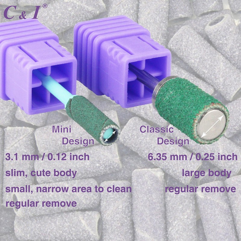 - Pack: 100pcs mini small sanding bands and 1pc mini mandrel. Sanding bands substitute for nail drill bits. Professional nail supplies for nail techs. Must have in nail salon, nail studio, or at home use. Slim body, 3.1 mm / 0.12 inch inside diameter, small sanding bands, easy to operate. It’s also could be used to make cuticle care. 5 colors sanding bands for choose. 5 sizes / grits of sanding bands for manicure. Multi-function to use