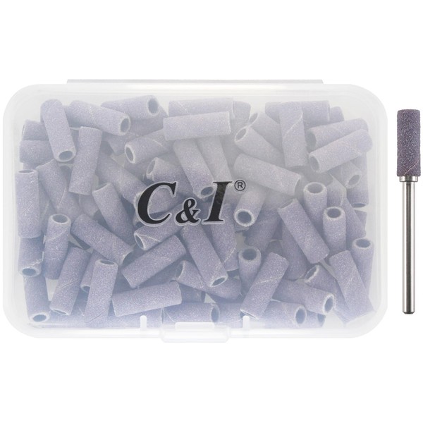 C & I 100pcs Small Sanding Bands & 1pc Slim Mandrel Nail Drill Bit Set Acrylic Gel Remove False Nails Shaping Cuticle Care Nail Prep Efile Nail Supplies for Nail Salon (Purple, 240 Extra Fine-XF)