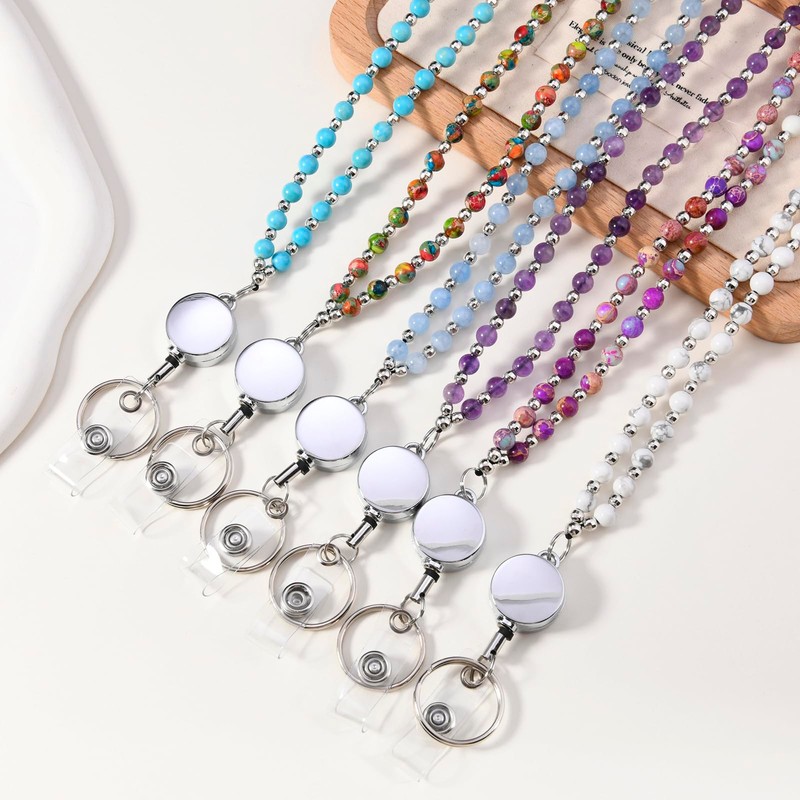 - Premium Material: The beaded retractable teacher lanyard is made of natural gemstone beads and premium metal badge reel, colors won't fade, easy and quick to use and hang, super sturdy and durable. It will not tarnish or rust.