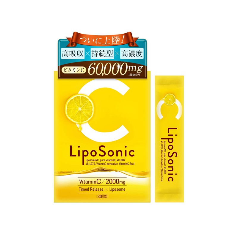 高濃度 超持続型 高吸収 リポソーム ビタミンC サプリ LipoSonic (リポソニック) 2000mg配合 30包(1ヶ月分) (1個)