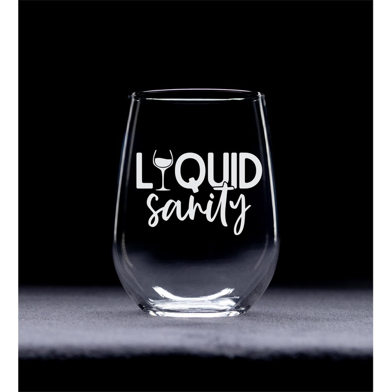 C M Liquid Sanity Stemless Wine Glass - Funny Gift for Men and Women - 17 oz.