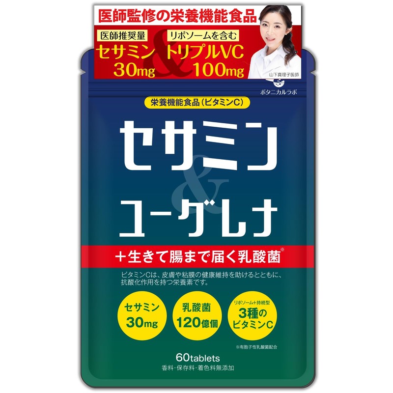 【医師監修】セサミン&ユーグレナ+生きて腸まで届く乳酸菌 リポソームビタミンC セサミン30mg ボタニカルラボ
