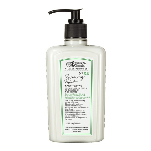 C.O. Bigelow Village Perfumer Moisturizing Body Lotion for Women and Men, Rosemary Mint Scented Lotion - No. 1532, 10 fl oz