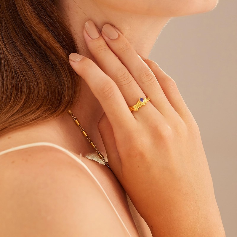 - Crystal ring: the gold-coloured, decorated with a shimmering crystal is a real eye-catcher, whether worn alone or in combination with other rings.