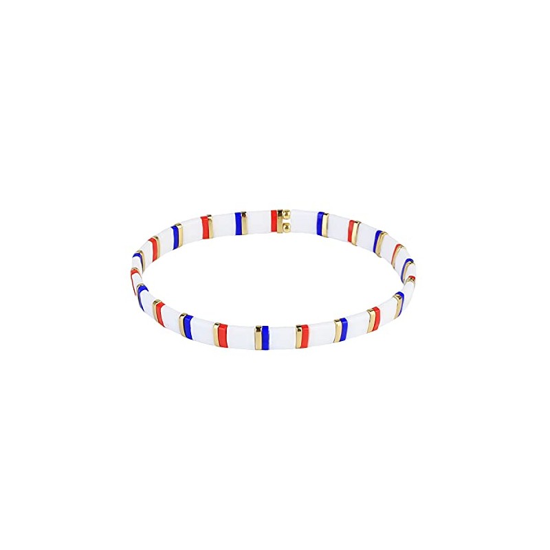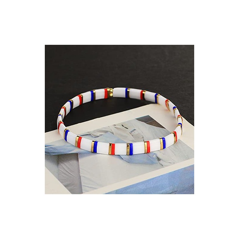 C·QUAN CHI Women Stackable Tila Bead Bracelets Flat Bead Bracelet Boho Friendship Bracelets Stretch Bracelet 03K