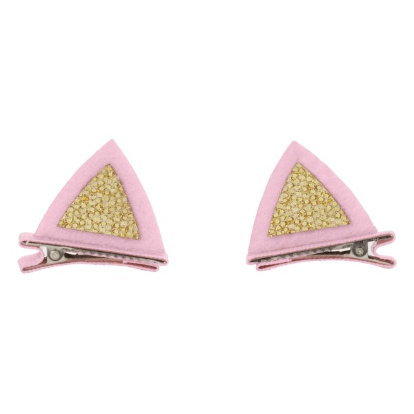 - C.R. Gibson Kitty Ear Hair Clips are made of felt with gold glitter