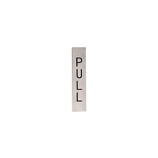 Brass or Stainless Steel Plate Adhesive Tape Backing These CRL 4-1/2" Push or Pull Indicators have 5/8 inch (15.8 millimeter) letters etched into the plate. There are several finishes available. Attach to door with pressure sensitive foam tape which is included. Plates measure 4-1/2 inches long by 1 inch wide (114 x 25 mm). Color: Brushed Stainless Length: 4-1/2 in. (114 mm) Width: 1 in. (25 mm) Minimum Order: 1 Each