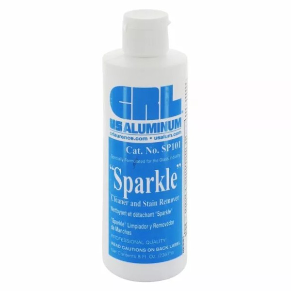 CRL "Sparkle" Cleaner does those glass cleaning jobs too tough for spray-on cleaners. It removes light water spots and stains in glass caused by weather, sea air, or pollution; also removes soap scum from shower doors and ceramic tile. Use it on auto glass to remove water spots from automatic windshield washers. Wipe on with a damp cloth or paper towel, rub stained areas, then wipe off. |