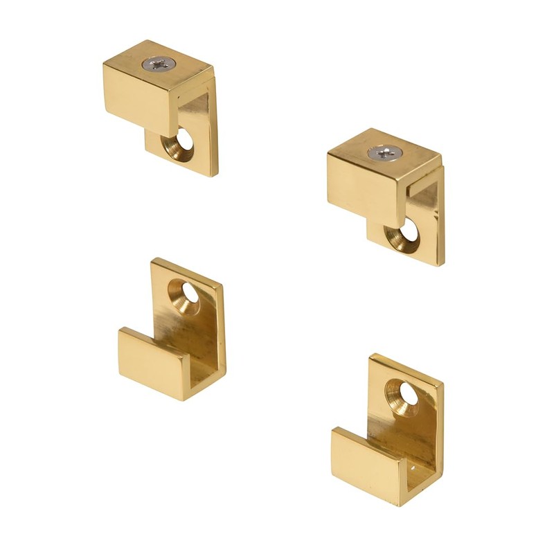 C.R. LAURENCE MC01BR CRL Brass 5/8" Wide Mirror Clip Set. CRL 5/8" (15.9 mm) Wide Mirror Clips are designed for 1/4" (6 mm) mirror. They simplify the process of installing mirrors by using the One-Piece Clip on the bottom and the Two-Piece Clip on top for a quick and easy installation. The Upper Clip is removable by unscrewing the top screw. Supplied with #6 x 3/4" (19 mm) Flat Head Wood Screws and Plastic Anchors. Set includes two Upper and two Lower Clips.. Part Numbers Variations: MC01BR