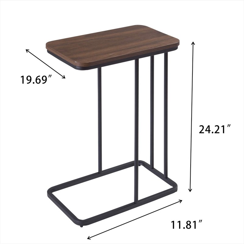 C Shaped End Table,Dorriss Small End Table MDF Black Walnut Coffee Table,Modern Simplicity C End Table with Steel Frame for Living Room,Bedroom (Black Walnut)