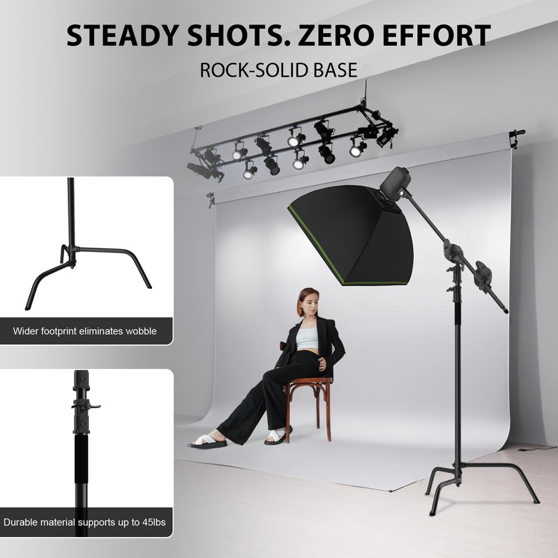 Engineered for demanding studio environments, this industrial-grade C-stand system delivers unmatched versatility and rock-solid support for professional photographers and videographers.