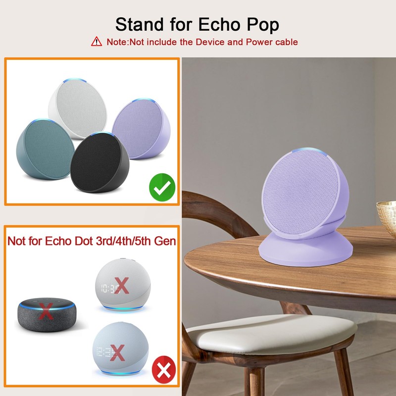 • 【SMART TABLE STAND】 The table stand is compatible with Echo Pop(Device and plug are not included). Not compatible with other generations of Amazon Echo Dot or the larger Amazon Echo.