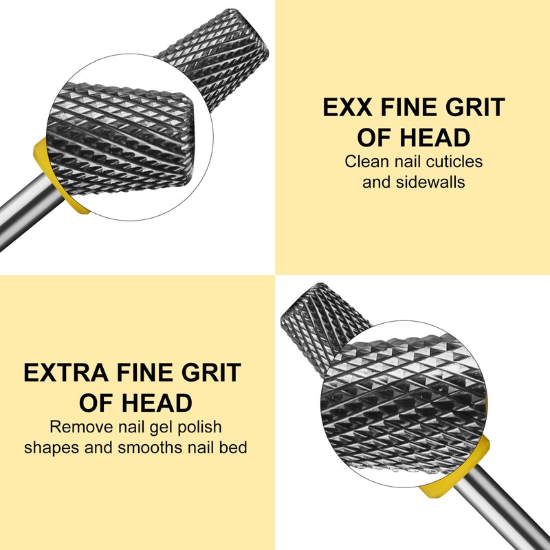 - Multifunctional Bits: 5 in 1 nail cutter bit for grinding, cleaning and preparing, shaping and shortening, cuticle work, under the nail and backfilling. Allows you to reduce the time when changing drills. The coarseness on the nail cutter bit changes from top to bottom: top is for cutting dead skin, the second part is triple fine, the third part is double fine and the bottom bottom is extra fine grit.