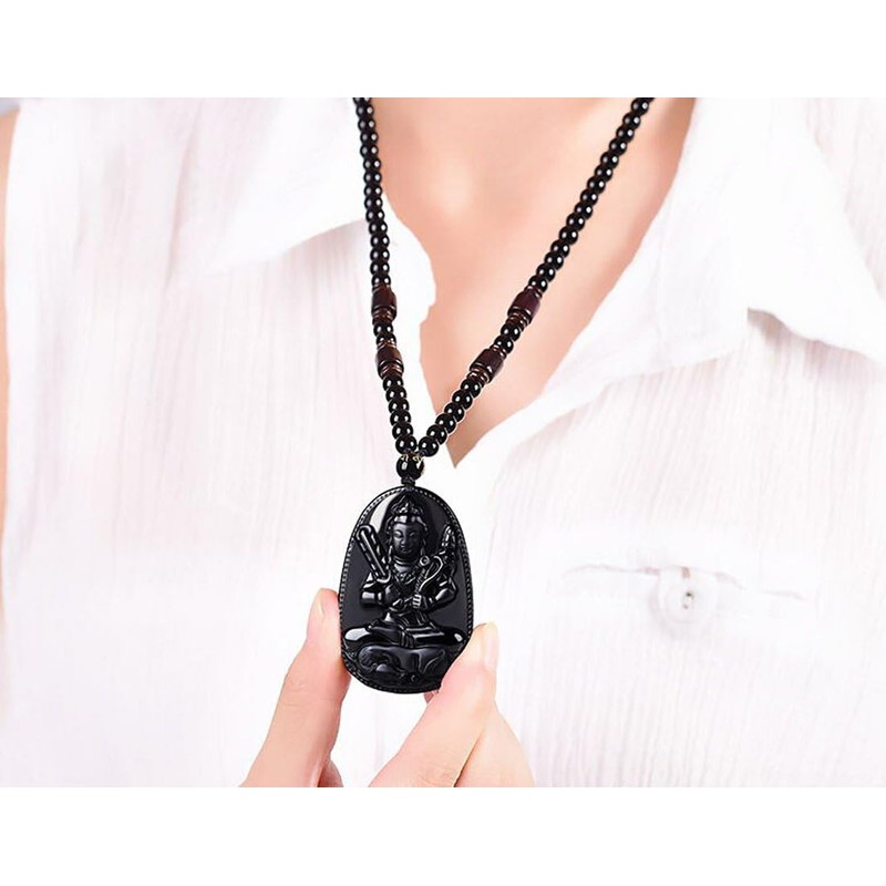 c1lint7785631 Women's Necklaces and Men's Necklaces Classic Fashion Natural Black Obsidian Gem Amulet Totem Obsidian Pendant Necklac (Samantabhadra-Snake)