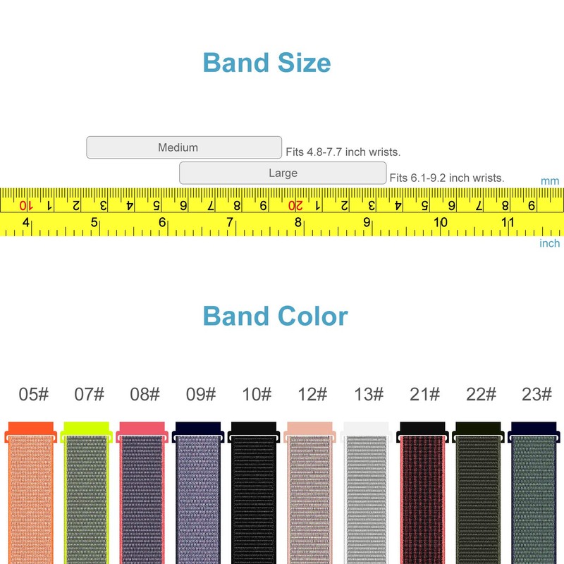 Unlike silicon or metal, this nylon sport band is more sweat-absorbent and breathable. The dense loops on the skin side allows moisture to escape and keeps you comfortable .