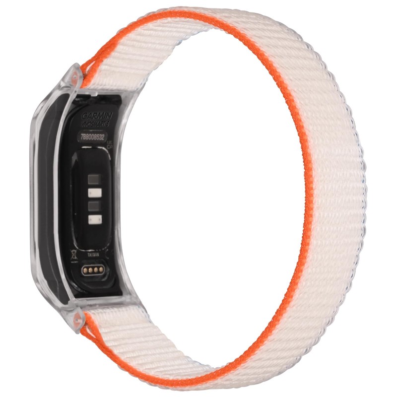 C2D JOY Sport Mesh Nylon Straps Compatible with Garmin Vivosmart 5 tracker Replacement Bands with Transparent Case-Stripe White