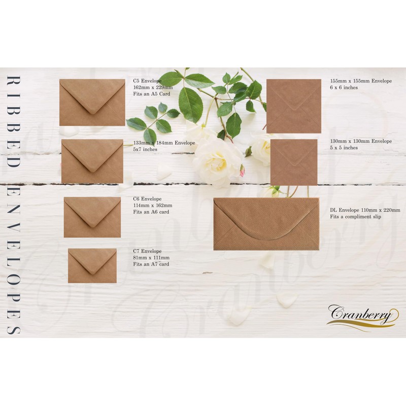 C7 / A7 Brown Ribbed Kraft Envelopes x 50 Pack 81mm x 111mm
