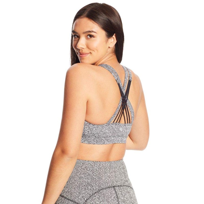 C9 Champion Women's Medium Support Compression Strappy Back Cami Bra, Black and White Jacquard, XL