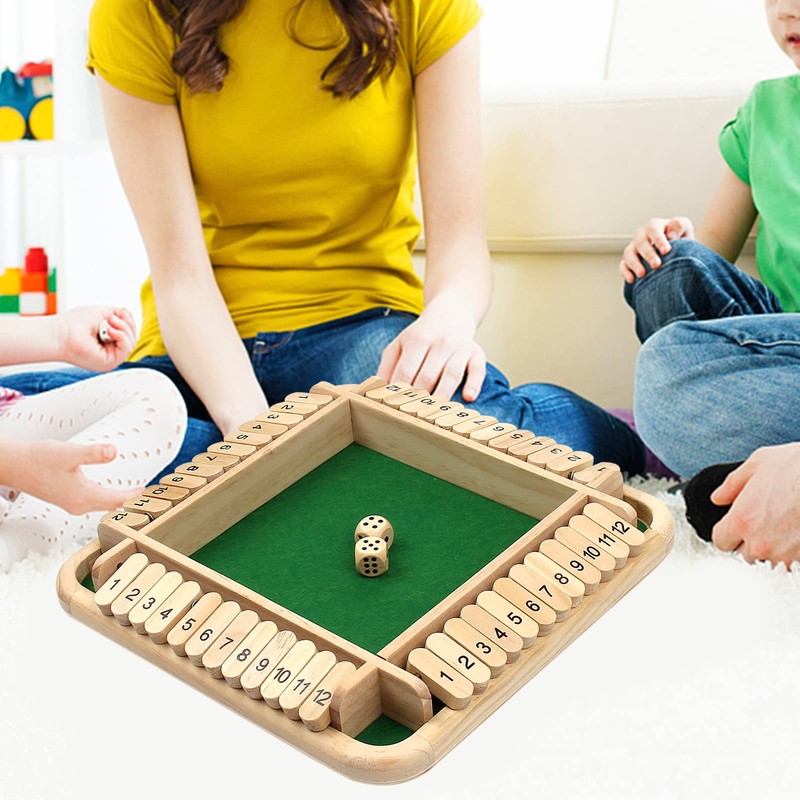 CA Mode Shut The Box Game, Dice Board Toy 2-4 Players Wooden Board Games 12 Numbers 4 Sided Flop Game Kids Adults Indoor Smart Math Table Game