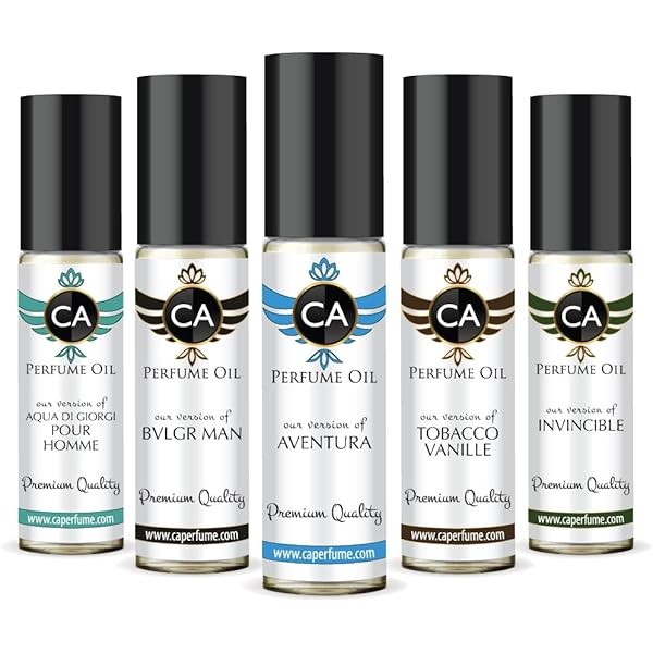 CA Perfume All Time Classic Men Set Impression of (Aventura + Aqua Di Giorgi Pour Homme + Invincible + Bvlg. Man + Tobacco Vanille) Fragrance Body Oils Travel Size Roll-On (0.3 Fl Oz/10 ml) X5