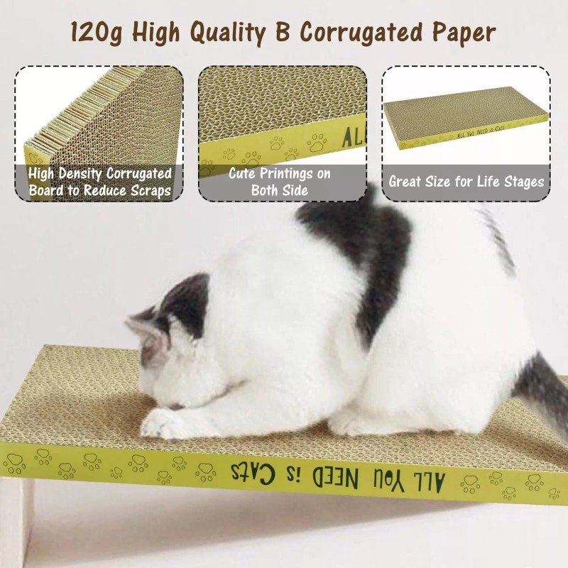 - Our cat scratchers are made from high density corrugated board which is more durable and causes less scraps. As they are made from natural material, they are friendly to the environment.
