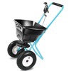 - Stable and Versatile Rubber Wheels: Equipped with 12-inch air-filled tires and a sturdy frame, this spreader offers balanced weight distribution and superior maneuverability across various terrains. From smooth lawns to uneven paths, you'll enjoy smooth and stable operation, making it easy to tackle any job with confidence.