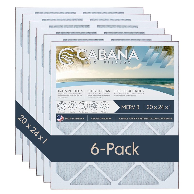 Cabana Filters 20x24x1 AC Furnace Air Filter, Merv 8 Capture Unwanted Particles, Pleated Furnace Filter HVAC AC Filters - Made in the USA - 6 Pack