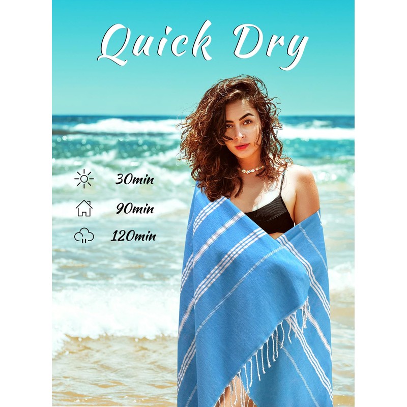 - High Quality -- Pure Cotton Turkish beach towels, colors will not fade, and thoughtfully prewashed so they're soft and inviting the first time you hold them.