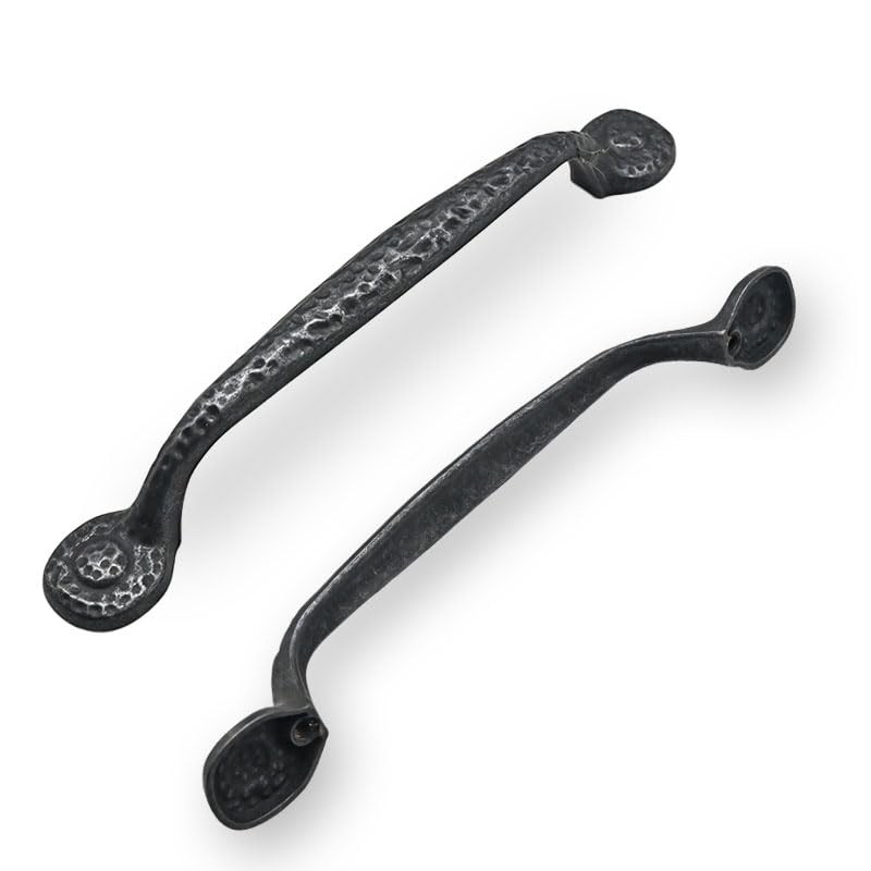 CABDM 2 Pack Rustic Black Hammered Cabinet Pulls - Vintage Kitchen Cabinet Hardware, 5 Inch (128mm) Hole Center