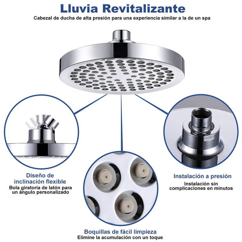 2. 2. El cabezal de ducha de alta presión de 6 pulgadas ofrece un potente flujo de agua, incluso con baja presión de agua, lo que le permite disfrutar de una lujosa ducha de lluvia.