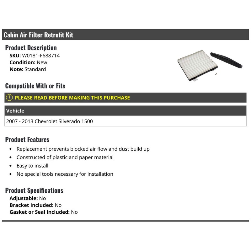 Cabin Air Filter Retrofit Kit - Compatible with 2007-2013 Chevy Silverado 1500