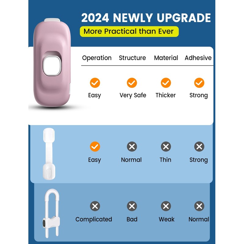 - 🥝【Sturdy Materials, Strong Adhesive】 To address issues of other child proof door lock breaking easily and adhesive not holding securely, we specifically use imported ABS materials to reinforce product hardness, making it less prone to damage. We also use enhanced 3M adhesive that securely adheres to surfaces such as cabinets, refrigerators, and ovens. Additionally, the product has passed CPC safety certification, ensuring your confident and secure usage!