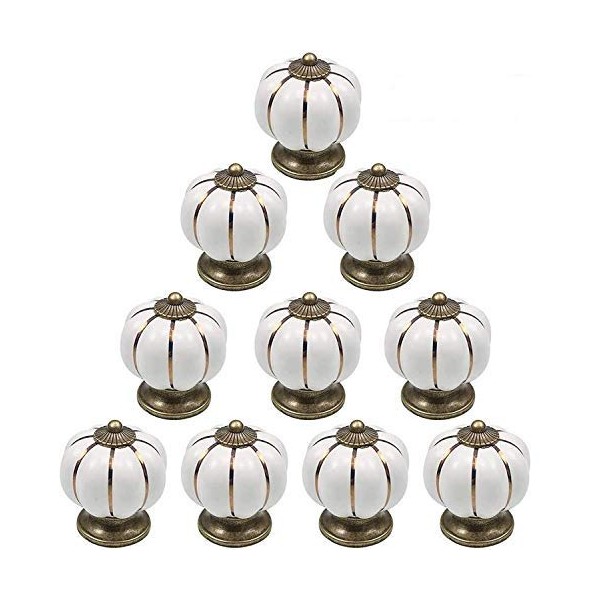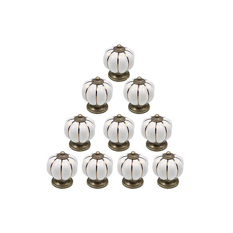 Cabinet Knobs,GLE2016 Ceramic Dresser Knobs Pumpkin Drawer Knobs for Kitchen Dresser Drawers Pulls Ceramic Handles (10pcs) (White)