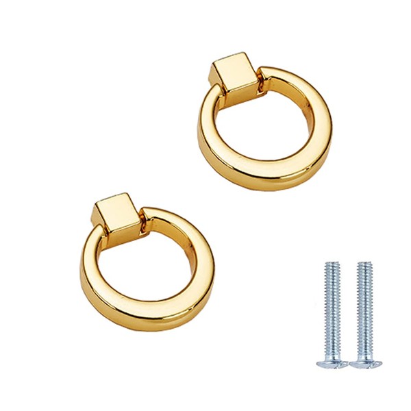 Cabinet Knobs, Metal Ring Pull Handles, Hardware Drawer Pulls Rings 1.57” Diameter Single Hole Cabinet Pulls for Dresser Kitchen Cupboard Wardrobe, Pack of 2 (Gold)