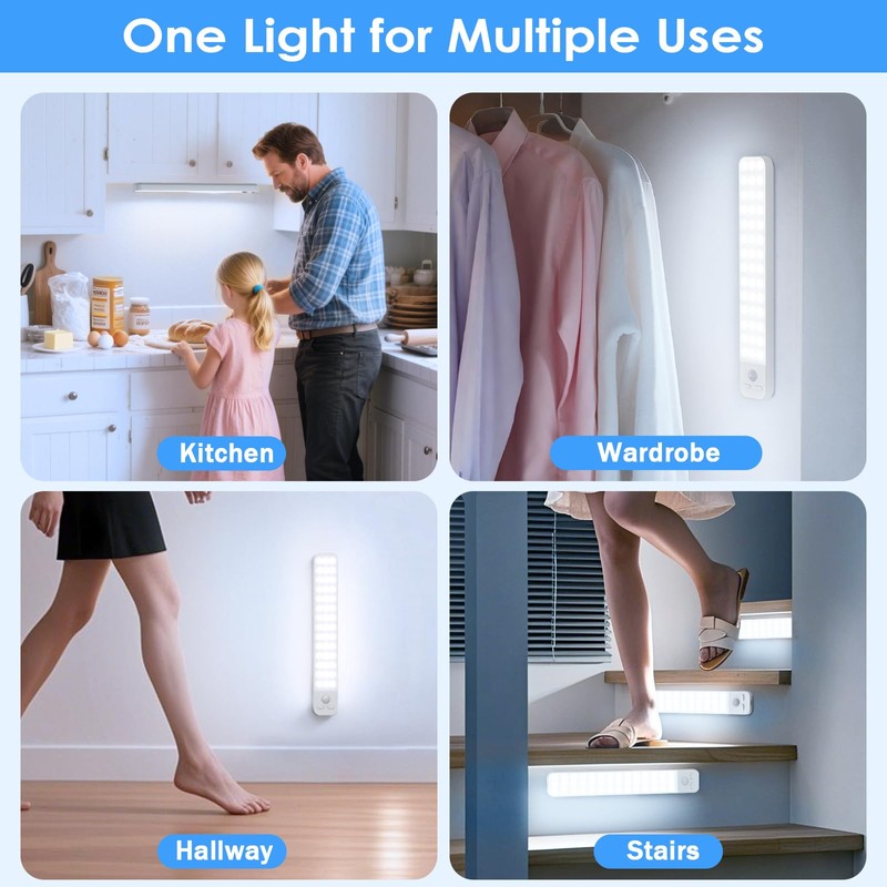 - Two installation methods: thanks to the strong magnetic attraction and the traceless adhesive, two installation methods, the under-unit LED light can be easily attached to metallic or non-metallic surfaces without tools. The light bar with sensor can be removed at any time to keep the wall clean and beautiful. You can also take it off and use it as a mobile torch to easily meet the requirements of different scenarios.