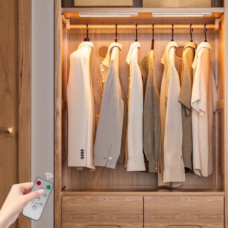- LED under-unit light versatile: 5 x under-unit lights, 1 x remote control, 2 x USB cables, 10 x self-adhesive iron sheets and user manual (English language not guaranteed). Buy wireless under-unit lights for lighting all dark or socket-less wall cabinets in your home. These lamps are ideal for kitchen, wardrobe, pantry, basement, staircase, hallway, shelf or bedroom lighting such as make-up mirrors etc. Hopefully it helps you!