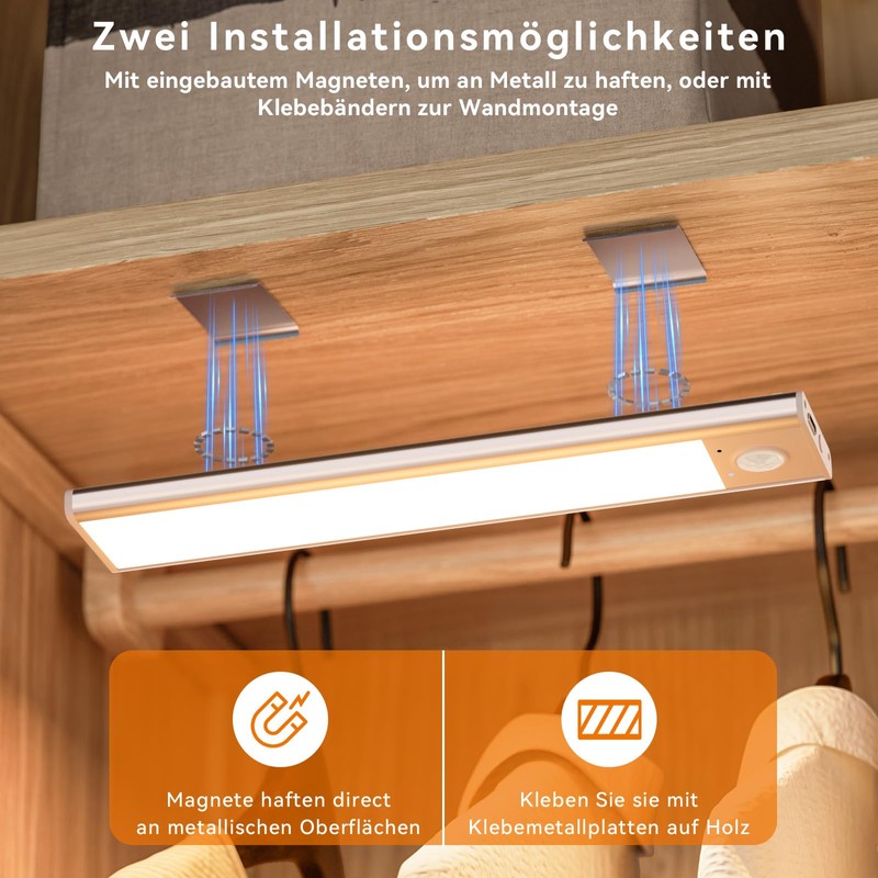 - Under-unit light kitchen LED with super strong magnetic suction design, various installation methods: the magnetic cover of these cabinet lamps extends over the entire back of the lamp, which increases the magnetic force. You can attach them to:① Built-in strong magnets can stick directly to metallic surfaces.② Use self-adhesive iron sheets to attach to any places。The nano adhesive is more robust, so you don't have to worry about it falling off or leaving residue on the wall。These under-unit lights can be easily removed for temporary lighting, charging or repositioning.