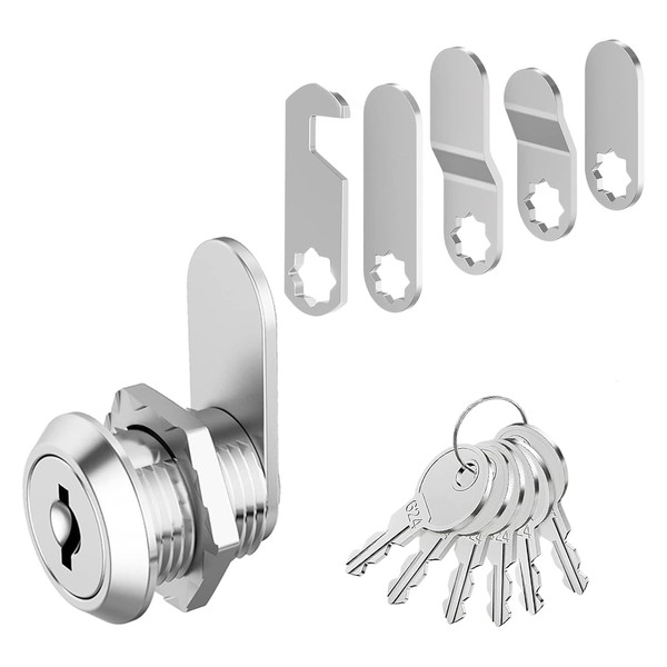 Cabinet Lock, Post Box Lock, Cam Locks, Comes with 6 Keys and 5 Different Locks Plates - Multi-Purpose for Cabinet, Cupboard, Mailbox, Drawer & Post Box