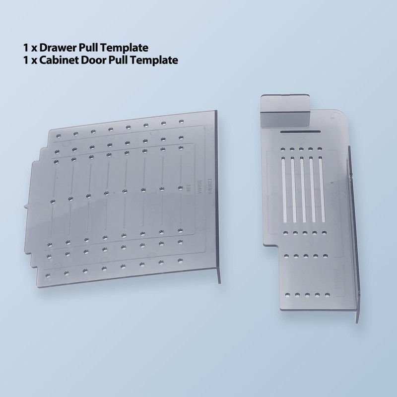 - 2PCS IN SET: The drill set contains about 1 drawer pull template and 1 cabinet door pull template. Drawer pull template suitable for drawer handle positioning and cabinet door pull template suitable for cabinet door handle positioning.