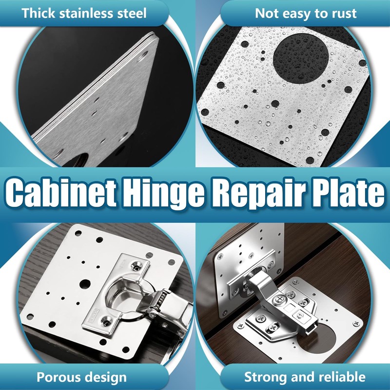 - High Quality: These cabinet hinges repair plate is made of high quality stainless steel material, strong, durable, rustproof, not easy to break and deform. Can help repair damaged hinges on the surface and convert the original fixed stress poin, and can be used for a long time