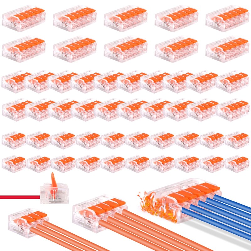 Cable Connector, Pack of 50 Connection Clamps, Electric Cable Clamps with Actuation Lever, 4 mm² Conductor Clamp, Lustre Terminals, Connection Clamp, Combined for Fixed Cable, 2-3-4 Conductors
