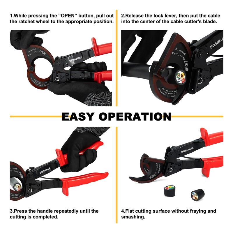 Cable Cutters Bosimux Upgrade Ratchet Cable Wire Cutters Heavy Duty for Electricians Cutting Aluminum Copper Soft Wire up to 600MCM / 240mm²