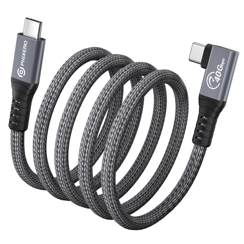Cable for Thunderbolt 4 Cable 6.6ft, PHIXERO Right Angle Thunderbolt Cable, with 40Gbps Data Transfer, PD100W Charging, Single 8K or Dual 4K Display, Compatible with Type-C, MacBook, Docking Station