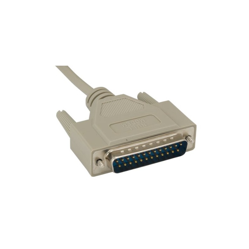 This null modem cable features one DB9 female and one DB25 male connector, allowing you to connect a serial printer to a 25-pin serial port. The cable is foil shielded for EMI/RFI protection from surrounding office equipment and fluorescent lights.