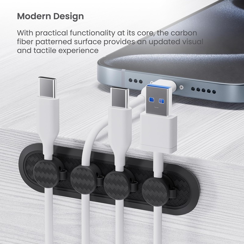 • 【Unique Design】 Our cable clips feature a distinctive carbon fiber pattern, enhancing both style and charm. With a powerful magnetic attraction, they effortlessly adhere to and organize various charging cables, ensuring a neat and orderly desktop.