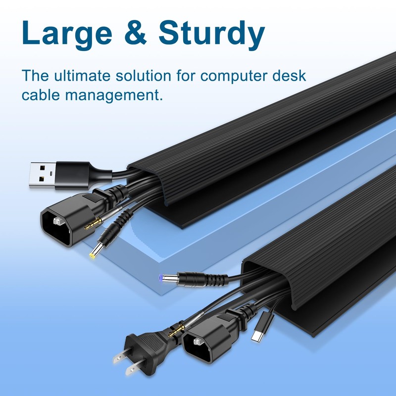 - Clean and Safe Workspace: Eliminate hanging cables that can be hazardous to you, your family, and even your pets. Concealing cables with our cable hider creates a tidy office environment, enhancing safety while working or enjoying entertainment. Keeping the cord organizer under the desk also protects them from being stepped on or tangled when cleaning.