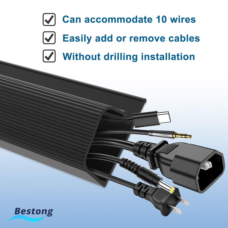 Cable Management Under Desk: Bid farewell to messy cords, wires, and cables with the Bestong J Channel Cable Raceway. This slim and sleek cable organizer not only eliminates cable clutter but also provides a safer environment by keeping dangling cords away from kids and pets. Achieve a clutter-free workspace with our under desk cable management solution.