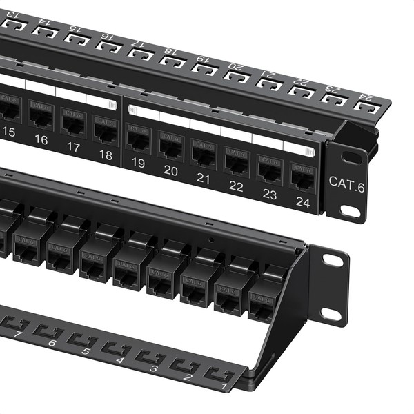 - High-Speed Network Performance: Elevate your network with this 1U 24-port Cat6 patch panel, designed for rapid data transfer rates up to 10Gbps, perfect for high-demand environments like data centers and enterprise networks.